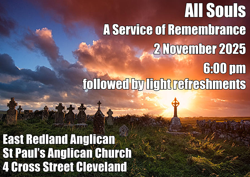 2 November 2025 6:00pm- Please feel free to come along into the quiet space of East Redland Anglican as St Paul’s Cleveland as remember our departed loved ones.